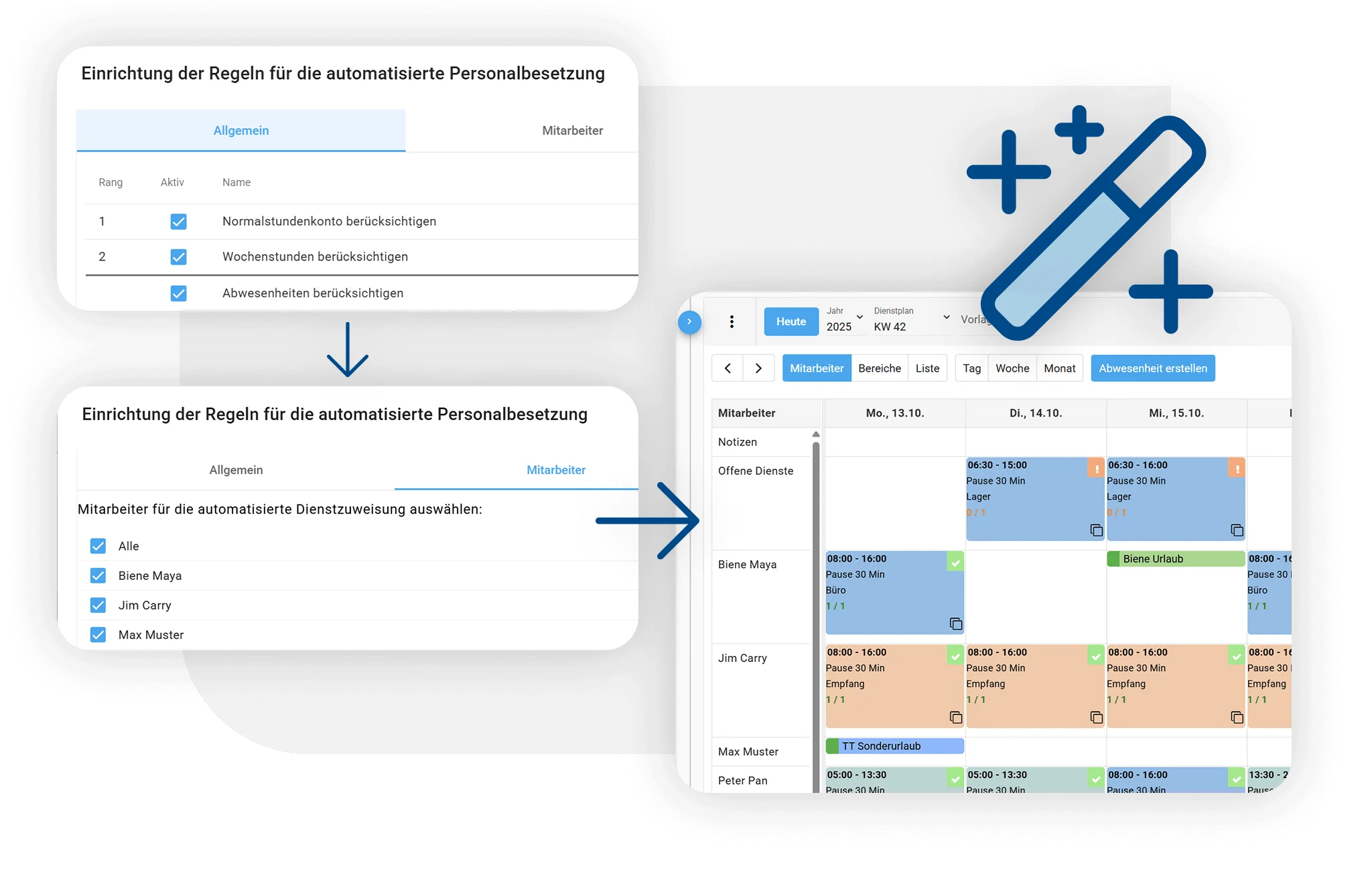 - Automatische Dienstzuteilung nach individuellen Regeln